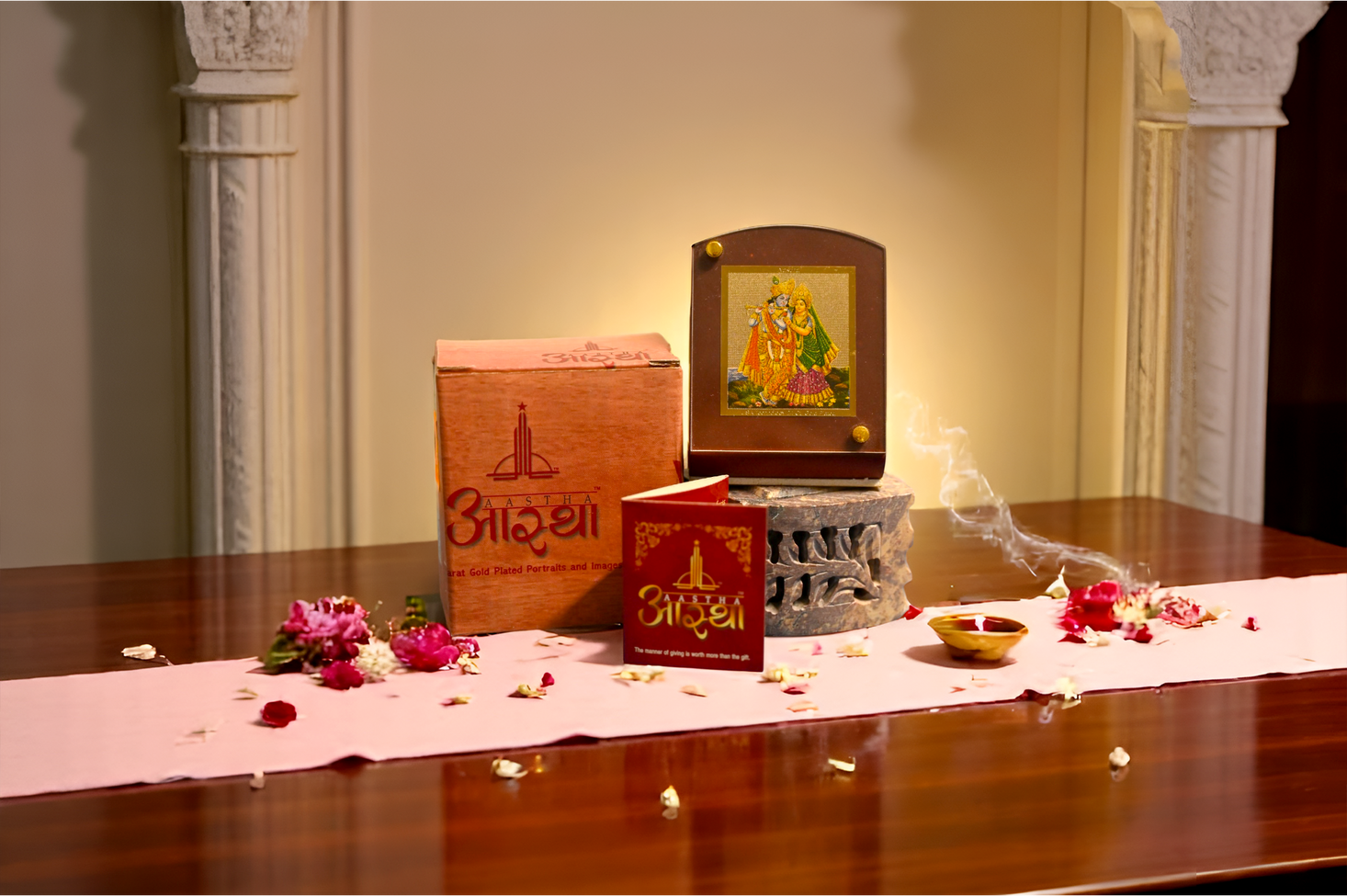 Place the frame securely on your car dashboard using the adhesive or stand provided. Ensure it faces forward and remains stable, inviting divine grace, positivity, and protection with every drive.