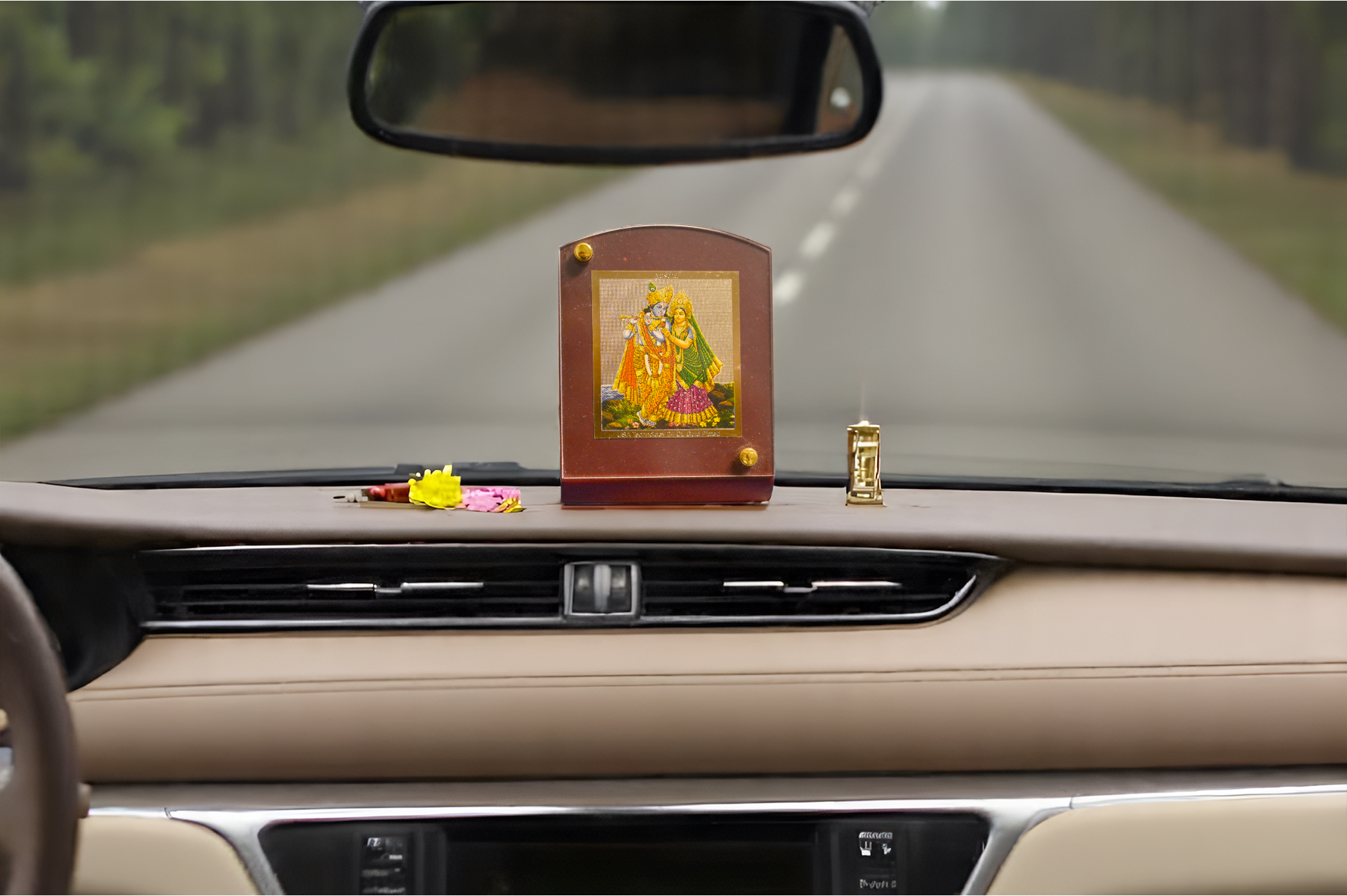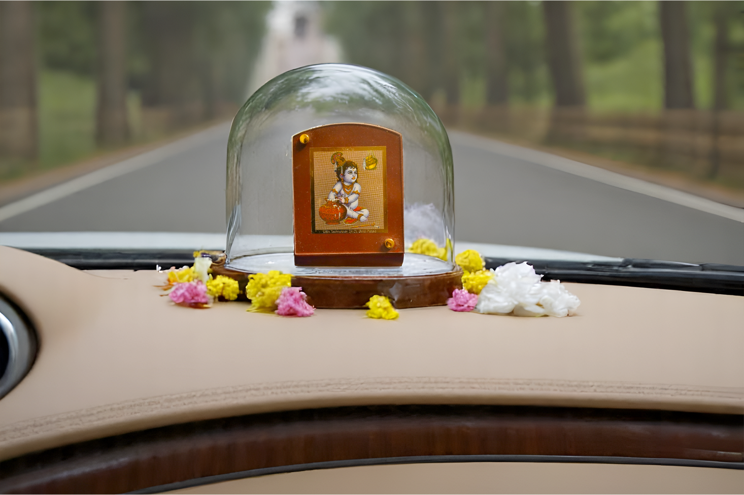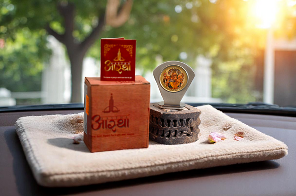 A beautifully crafted 24-carat gold-plated car dashboard frame, designed to bring divine presence and blessings to every journey. Elegantly finished for a premium look, it serves as both a spiritual symbol and a protective charm during travel.