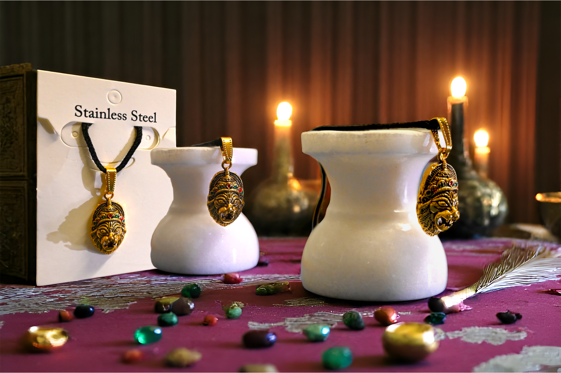 Meticulously crafted spiritual pendant featuring Lord Narsimha dev , designed to provide a constant sacred connection. This devotional accessory exemplifies fine artisanship while serving as a meaningful reminder of divine presence throughout your day.