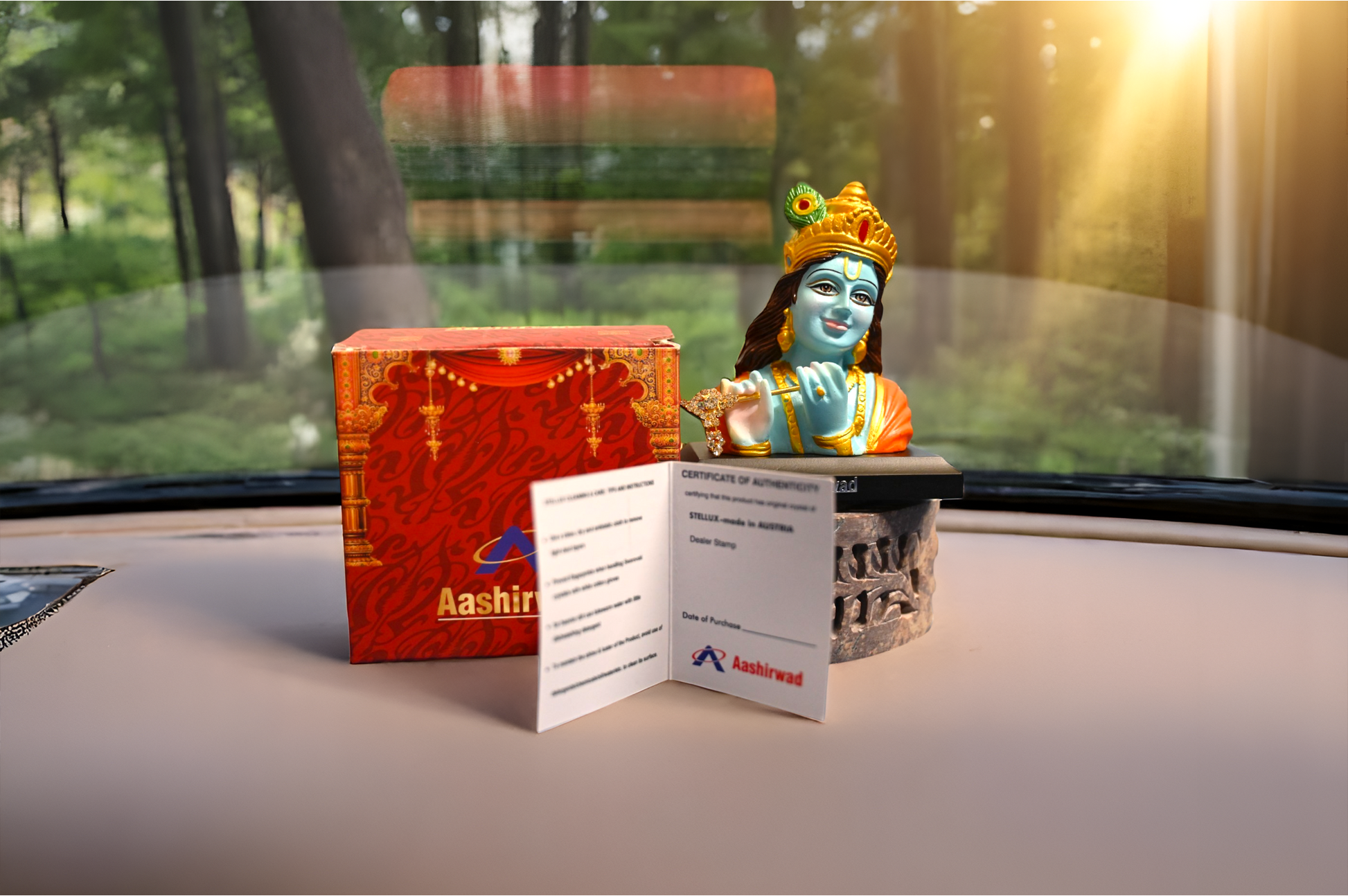 A beautifully crafted 24-carat gold-plated car dashboard frame, designed to bring divine presence and blessings to every journey. Elegantly finished for a premium look, it serves as both a spiritual symbol and a protective charm during travel.